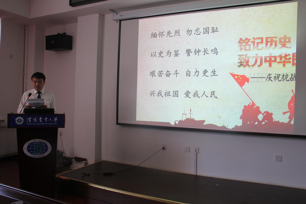 在土壤楼新楼举办了纪念中国人民抗日战争暨世界反法西斯战争胜利70周年主题活动。在校的研究生和本科生共100余人参加。