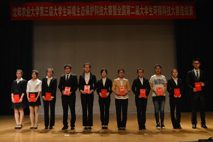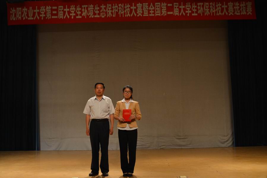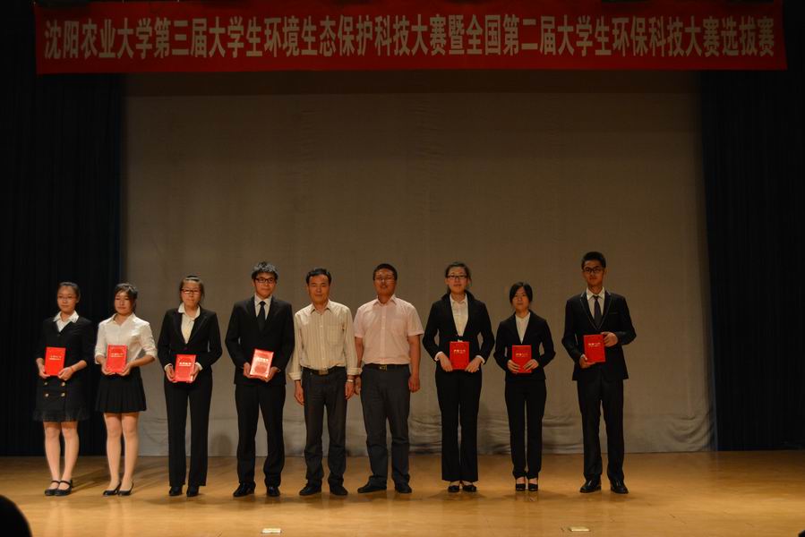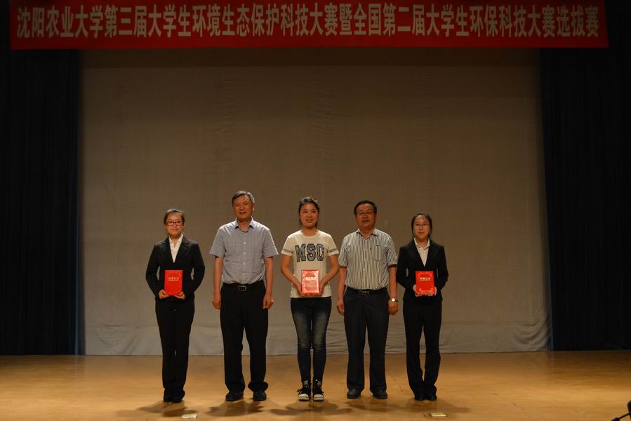 第三届环境生态保护科技大赛决赛在沈农大讲堂隆重举行。本次大赛以“环境生态保护助力美丽中国”为主题,鼓励大学生在环境保护领域进行科技创新。出席大赛决赛的领导和专家评委有:教务处处长段玉玺、教务处实践科科长刘正远、分析测试中心主任刘鸣达、学院党总支书记韩晓日、院长汪景宽、副院长邹洪涛、院工会主席李军、副院长李炳学、院党总支副书记赵裕国、院团委书记杜杰。