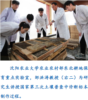 院长,邹洪涛教授带领近百名师生参与了第三次全国土壤普查工作。2023年为辽宁省培训指导“三普”技术人员2500余人次,先后承担了东北区剖面技术领队培训、外业调查与采样技术培训、内业检测培训等培训任务。同时,承担了辽宁“三普”土壤分类方案制定、80000多个表层样点和剖面样点的校核、采样底图制作、近700个剖面样点调查采样等工作任务,为高质量完成土壤普查工作贡献了“沈农力量”。