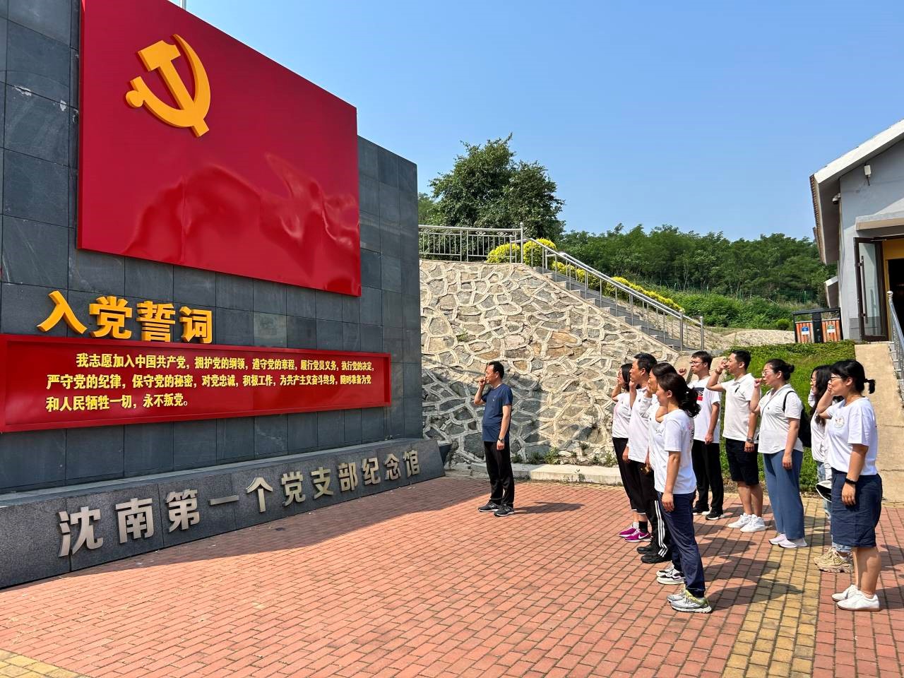 大家先来到苏家屯区杨城寨村、马耳山村等地考查调研乡村经济发展情况,探讨新时期生态文明背景下乡村振兴的新思路。随后,大家又来到沈南第一党支部纪念馆参观学习红色历史。这里曾经是苏家屯区第一个党组织(时称“辽阳特支”)成立的地方,沈南地区的革命先辈们积极投身革命活动,宣传抗日救国道理,散发传单、组织罢锄斗争、团结群众参加革命活动,为沈阳地区革命运动播下星星之火,打下深厚的群众基础,积极引导影响了一大批有志青年寻找党组织、走上革命道路,在中国共产党的历史上留下了浓重的一笔。参加活动的党员同志们在党旗下重温入党誓词,在组织生活室召开了一次特殊的组织生活会。邹洪涛院长为党员同志上了一次题为“坚定理想信念,回忆党的历史”的党课,激励大家不忘初心、牢记使命、努力工作,为学校和学院建设贡献力量。刘鸣达教授也在会上结合自己的工作经历鼓励青年教师学党史、明真理,敢为人先、一心为民,努力让党的事业薪火相传。党支部书记党秀丽副教授也要求所有老师继续发扬艰苦奋斗的精神,为专业建设添砖加瓦。