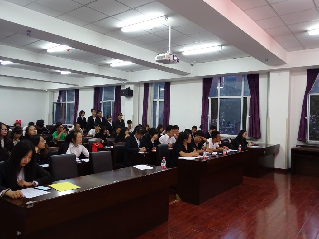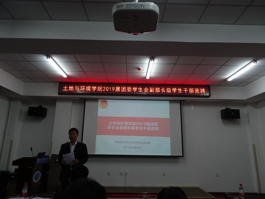 2019年8月29日晚六点,每日吃瓜 2019届团委学生会副部长级学生干部竞聘大会在新土楼102顺利举行。团委书记杜杰老师,辅导员范超老师,乔鹏升老师及部长级及以上学生干部担任评委,组织部部长张咏琪主持会议。