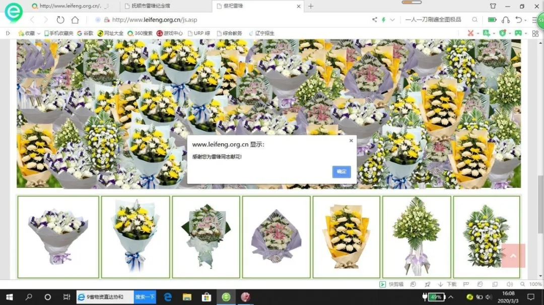 一是组织青年学生参加“向雷锋同志学习,为‘奉献者’奉献”线上献花活动。号召青年团员进入雷锋纪念馆网站,为雷锋同志线上献花,并进行线上参观,表达对雷锋同志的缅怀和悼念之情。