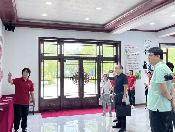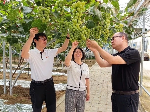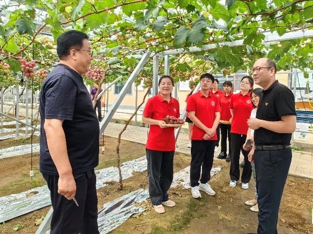 党委书记陈志刚协同辽宁日报社记者一行结合主题教育活动深入辽宁鲅鱼圈葡萄科技小院开展实地调研。鲅鱼圈区农业农村局党组书记姚勇、鲅鱼圈区司法局党组书记、局长陈光旭、鲅鱼圈区委组织部副部长邵起、鲅鱼圈区红旗镇党委副书记乔万孟、鲅鱼圈区红旗镇胜台村党支部书记张琳晓、鲅鱼圈区红旗镇胜台村经济联合社副理事长、鲅鱼圈区葡萄行业协会会长王龙富等当地领导参加了调研活动。
