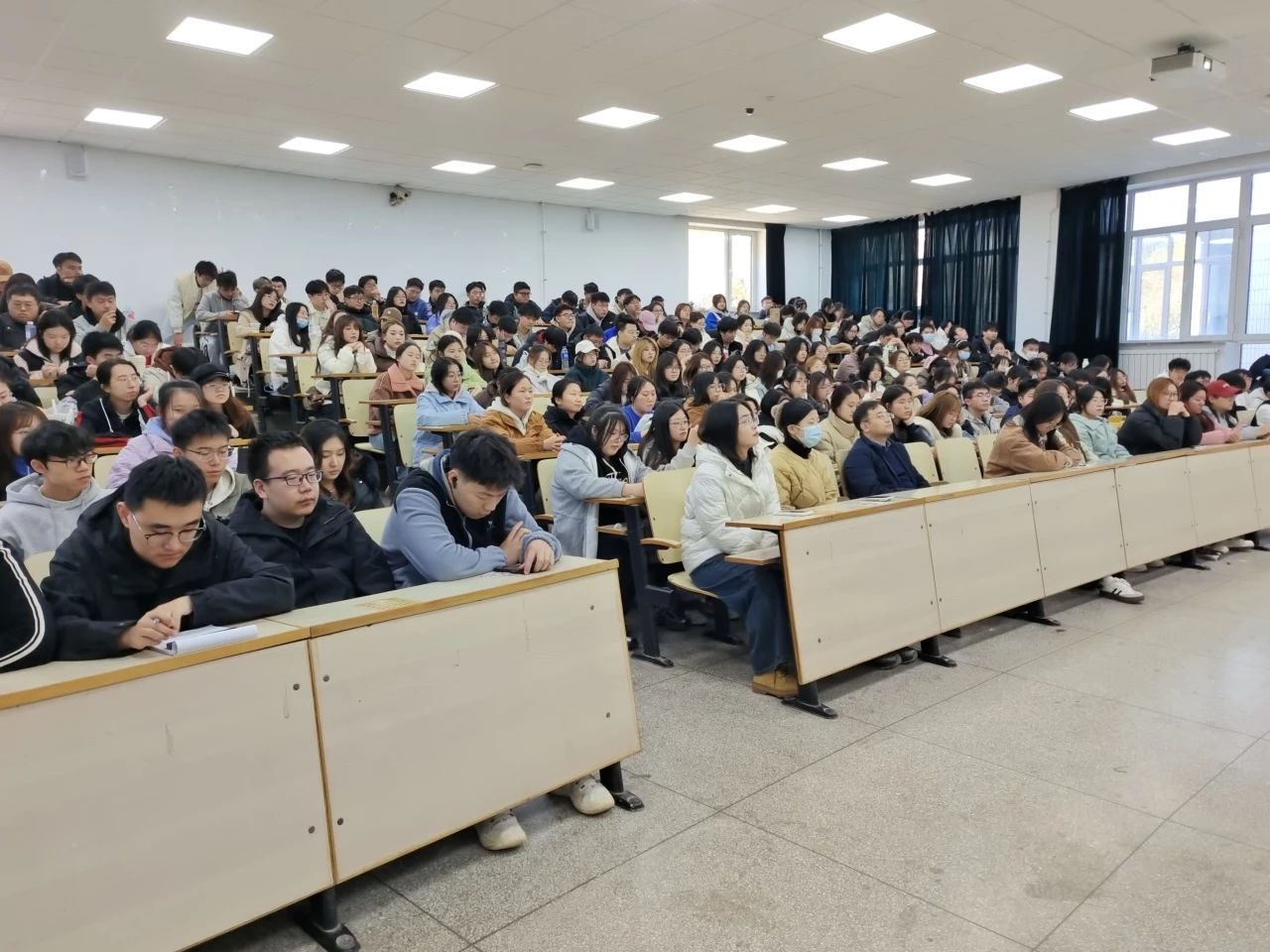 2022级全体本科生考研动员会在一教南106成功召开。学院党委副书记袁玲老师,副院长裴久渤副教授,辅导员葛新老师、文泊苏老师出席了此次会议。会议由院党委副书记袁玲老师主持。