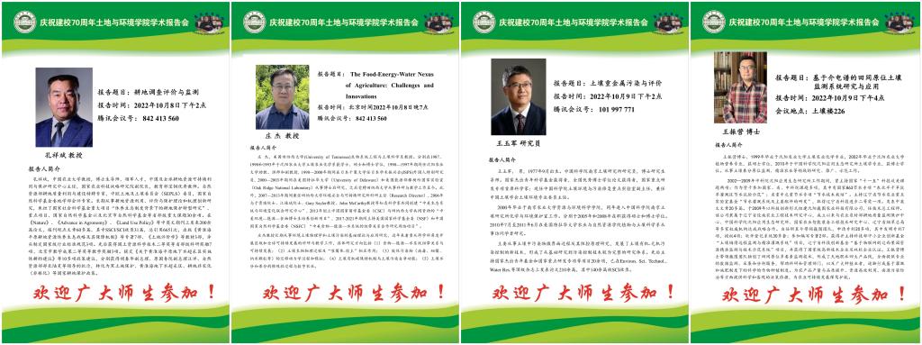 为庆祝我校成立70周年,每日吃瓜 特邀孔祥斌教授、庄杰教授、王玉军研究员和王振营博士于2022年10月8日-9日开展恩凤学术论坛报告会,欢迎广大师生参加!