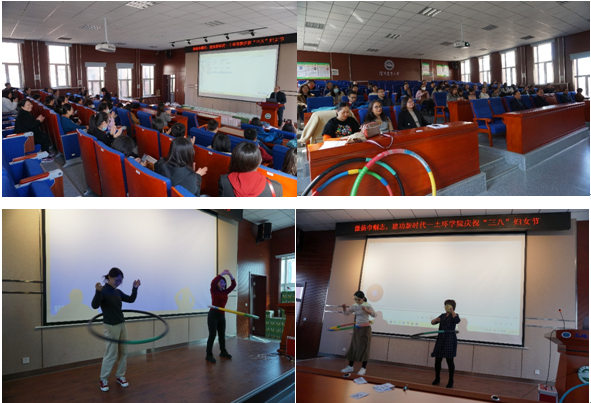 首先,全体参会教职工一同收看了习近平总书记代表党中央向参加全国“两会”的女代表、女委员、女工作人员,向全国各族各界妇女,向香港特别行政区、澳门特别行政区和台湾地区的女同胞、海外女侨胞致以节日的祝贺和美好的祝福的视频,并一起学习了宣传中国女排精神的宣传片,随后活动进入学院领导为女教工颁奖送祝福环节,学院党委书记陈志刚代表学院向全院女教工送上了祝福,他回顾了学校、学院老一辈女教授、女职工以忠诚、奉献的品格为学院发展所做出的的贡献,鼓励大家在安排好“小家”生活的同时,在学院教学、科研等工作中建功绽芳华。女教工在感受温馨节日氛围的同时,也深受女排精神鼓舞,大家一起参与了跳绳、套圈、摇呼啦圈等趣味运动项目。