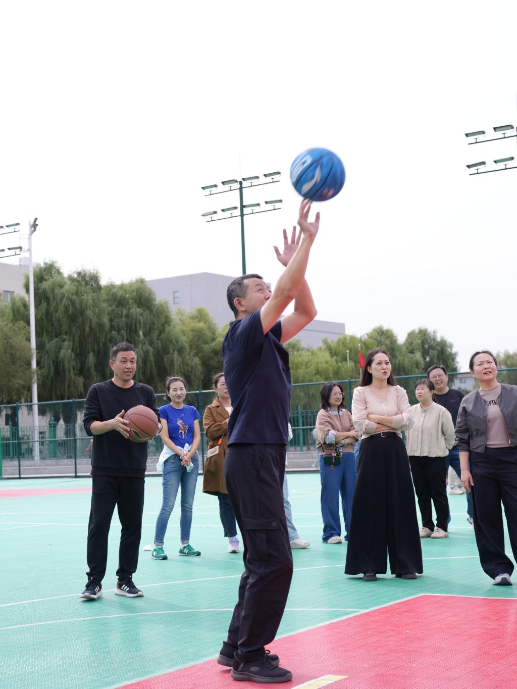学院工会于2025年9月23日下午在九州体育场旁篮球场成功组织举办了首届教职工投篮比赛。
